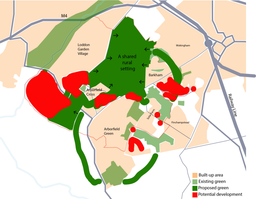 - The possibility of achieving a part of the proposed Loddon Garden Village, Arborfield Cross, Arborfield Green, and the historic village of Barkham green infrastructure ring but there is some risk in achieving this in full if development is not managed carefully